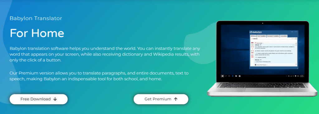 يُشاع أن Babylon هو أحد برامج الترجمة الرائدة على مستوى العالم. ويحتوي على مجموعة من 1700 مسارد وقواميس بلغات متعددة. وهذا التطبيق في الخدمة منذ سنوات ولديه خبرة تزيد عن 19 عامًا ويقدم نتائج دقيقة في المرادفات والقواميس.