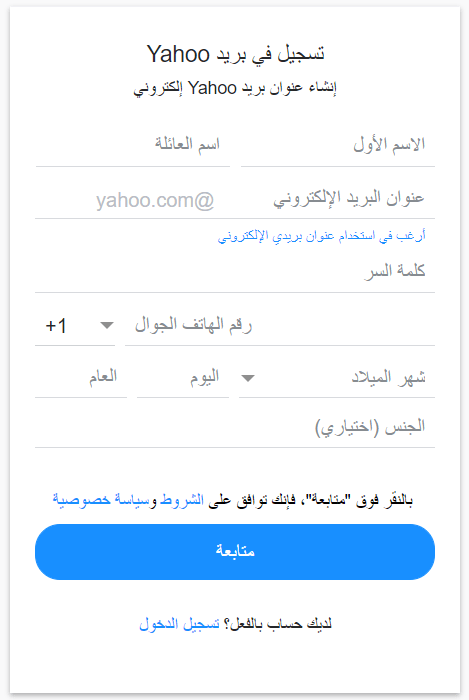 رابعا: كيفية إنشاء بريد إلكتروني على Yahoo