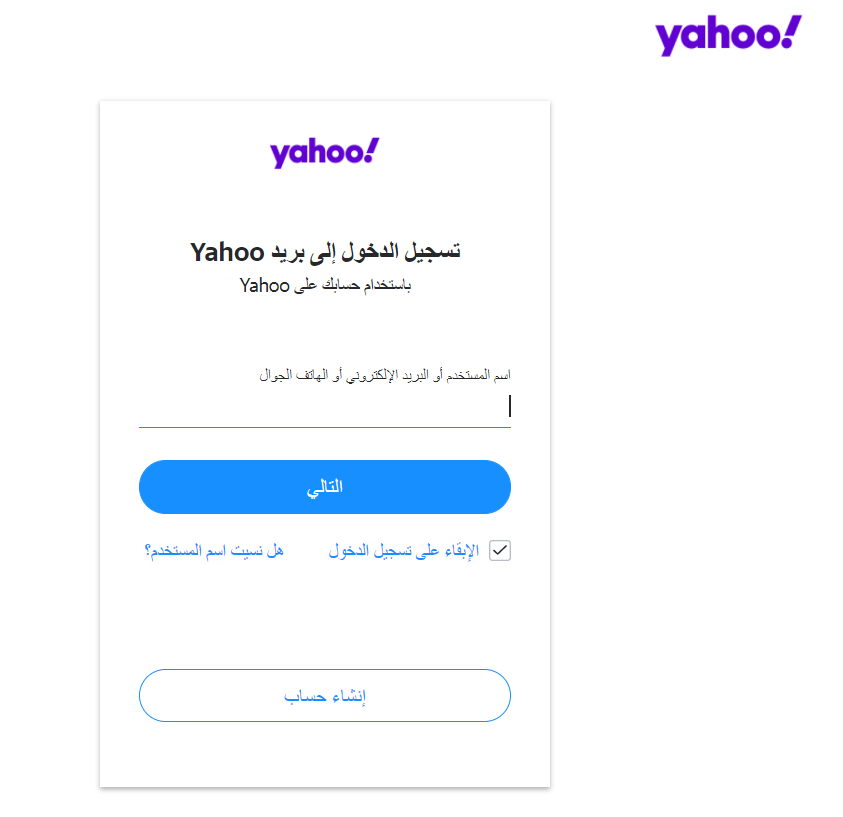 - ستظهر لك صفحة تسجيل الدخول إلى ياهو Yahoo كما في الصورة الآتية: