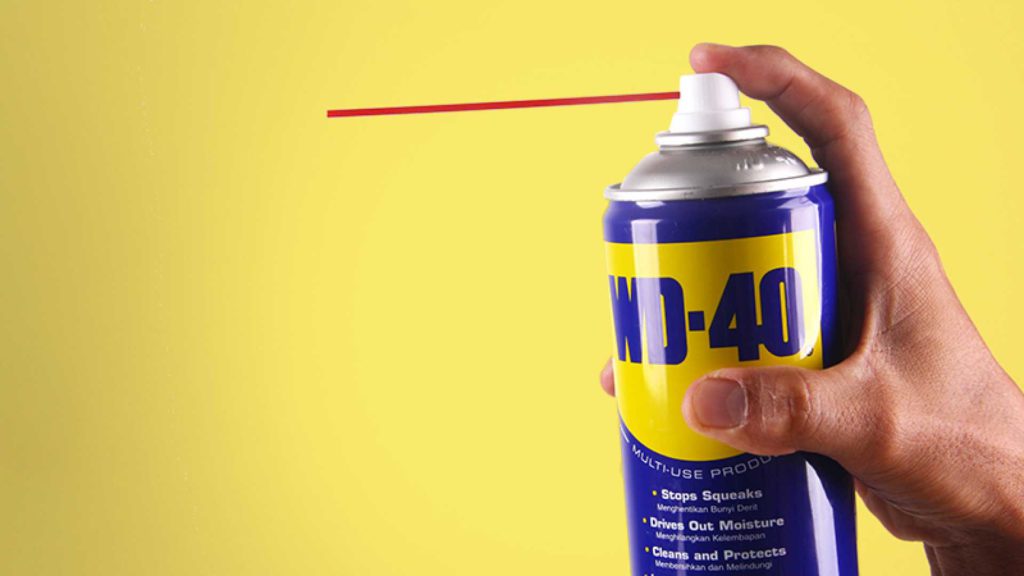 من المواد الكيميائية التي يمكن استخدامها في إزالة البقع الدهنية والزيتية الصعبة على الملابس، مادة WD-40 والمستخدمة في تنظيف السيارات والأدوات الصناعية.